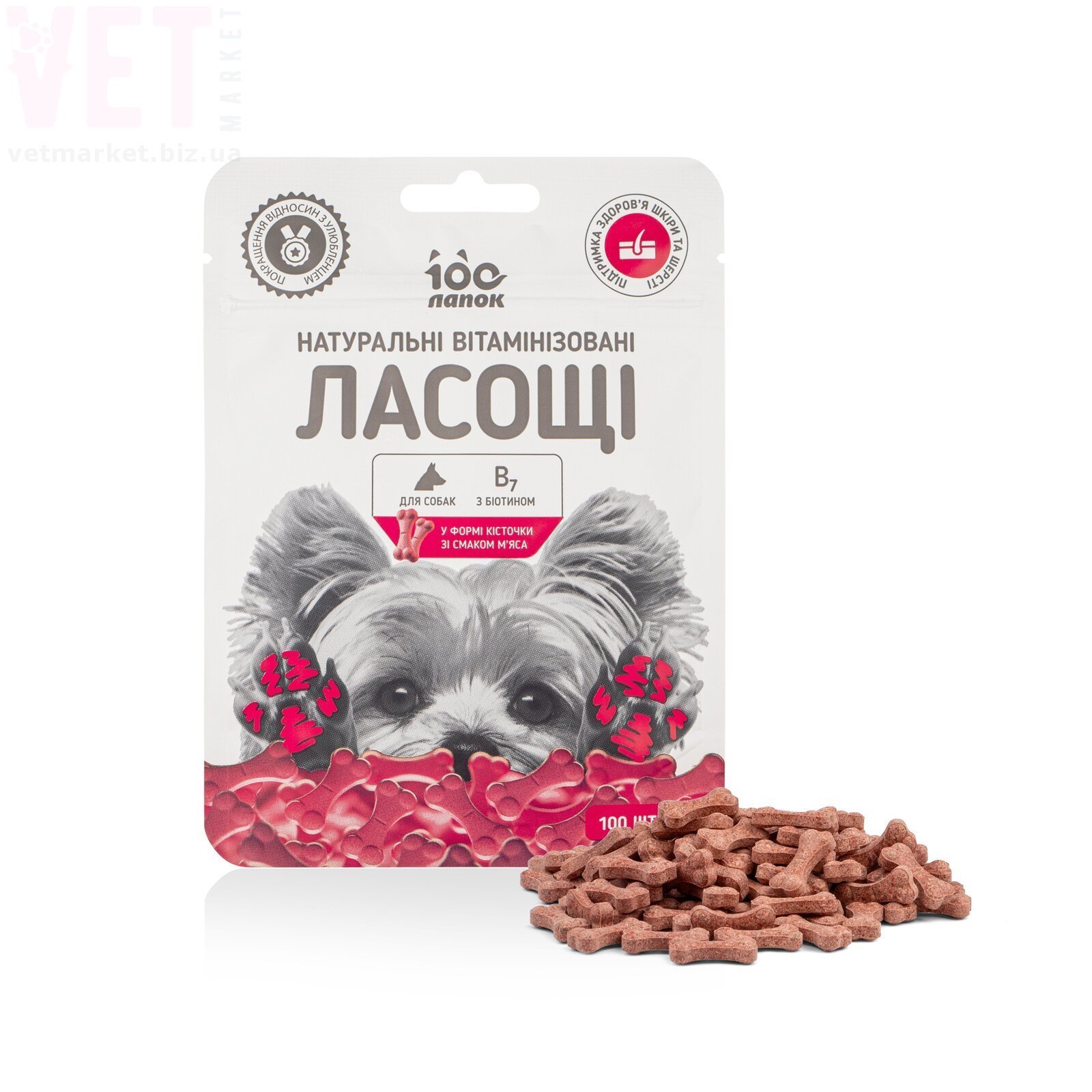 100 лапок ласощі для собак зі смаком м'яса, 100 шт., Vitomax