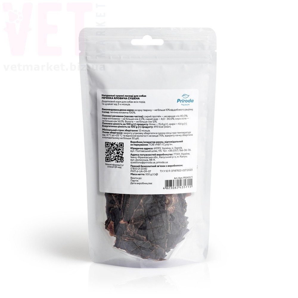Ласощі для собак Печінка яловича, 100 г, Priroda