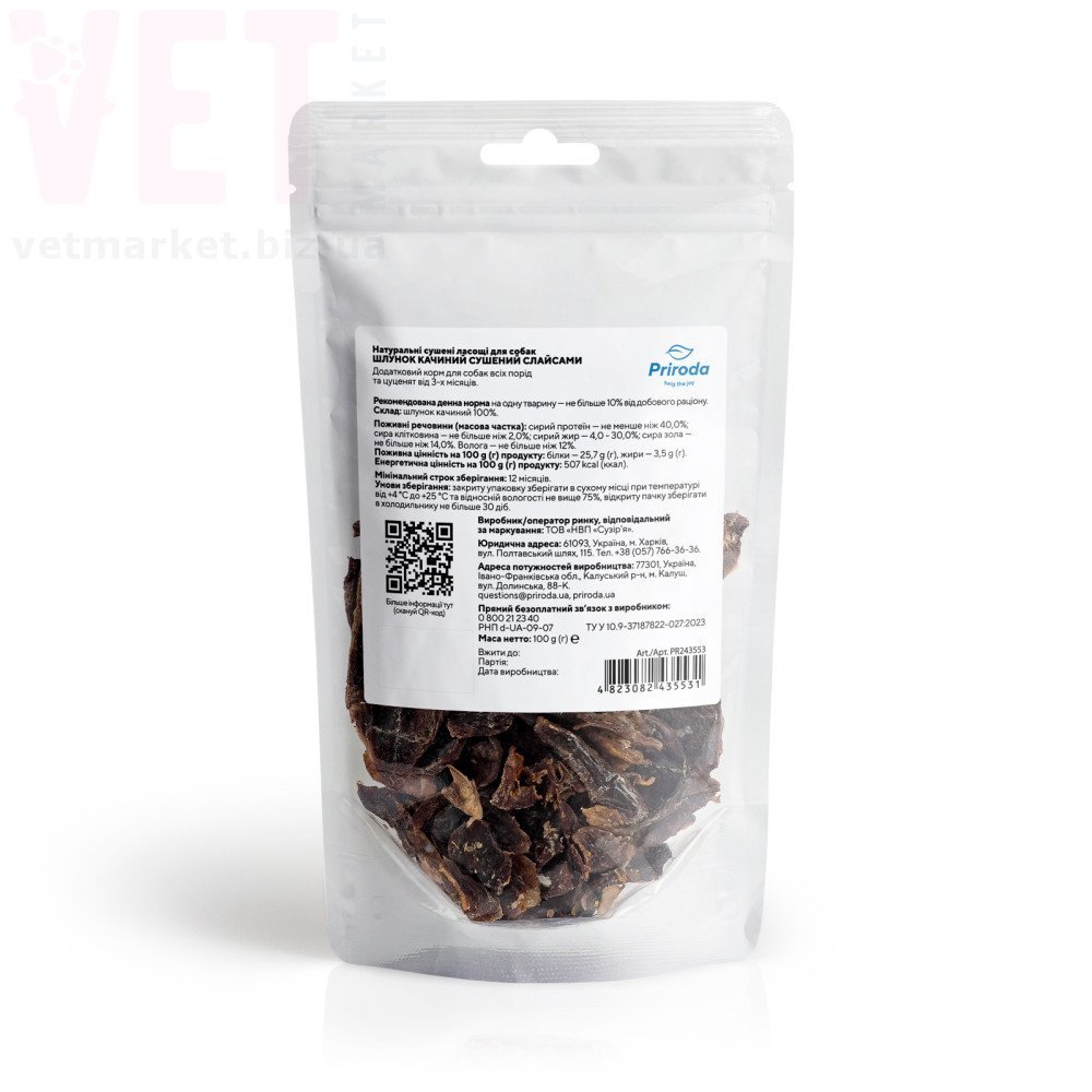 Ласощі для собак Шлунок качиний слайсами, 100 г, Priroda