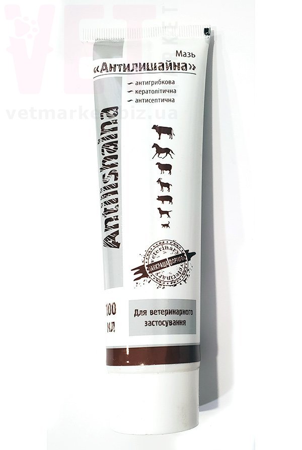 Мазь «Антилишаиновая» представляет собой однородную массу пастообразной консистенции от серого до коричневого разных оттенков цвета, со специфическим запахом.В состав мази входят: кислота салициловая, окись цинка, сера, деготь, скипидар, вазелин медицинский или ветеринарный.