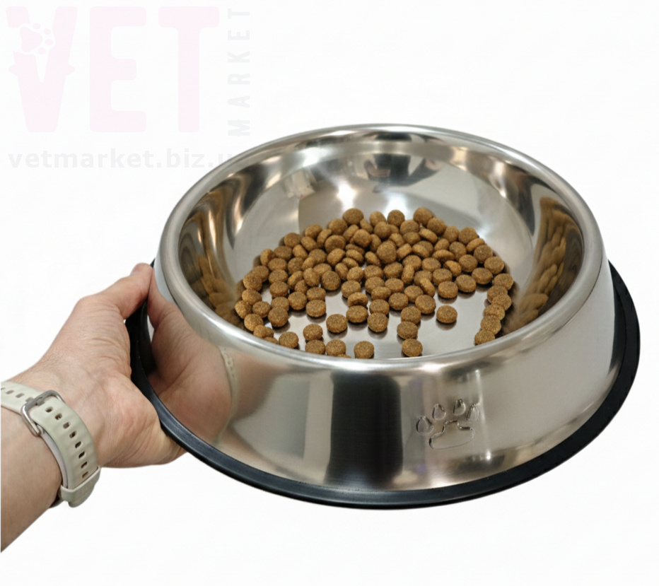 - Миска виготовлена з якісної сталі, в якій їжа не окислюється, а вода залишається завжди свіжою.