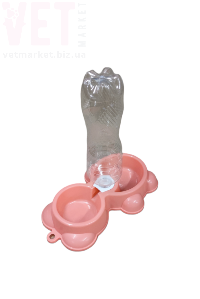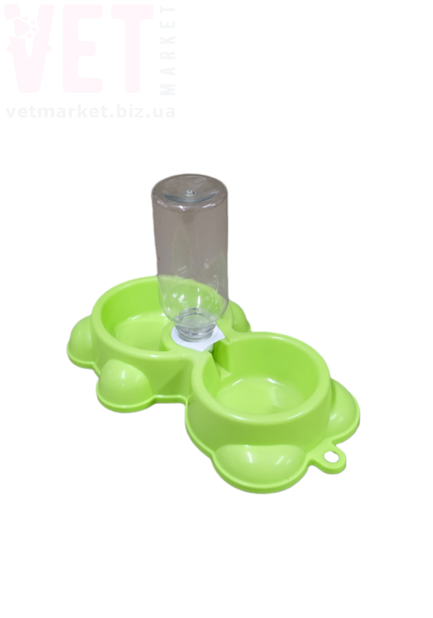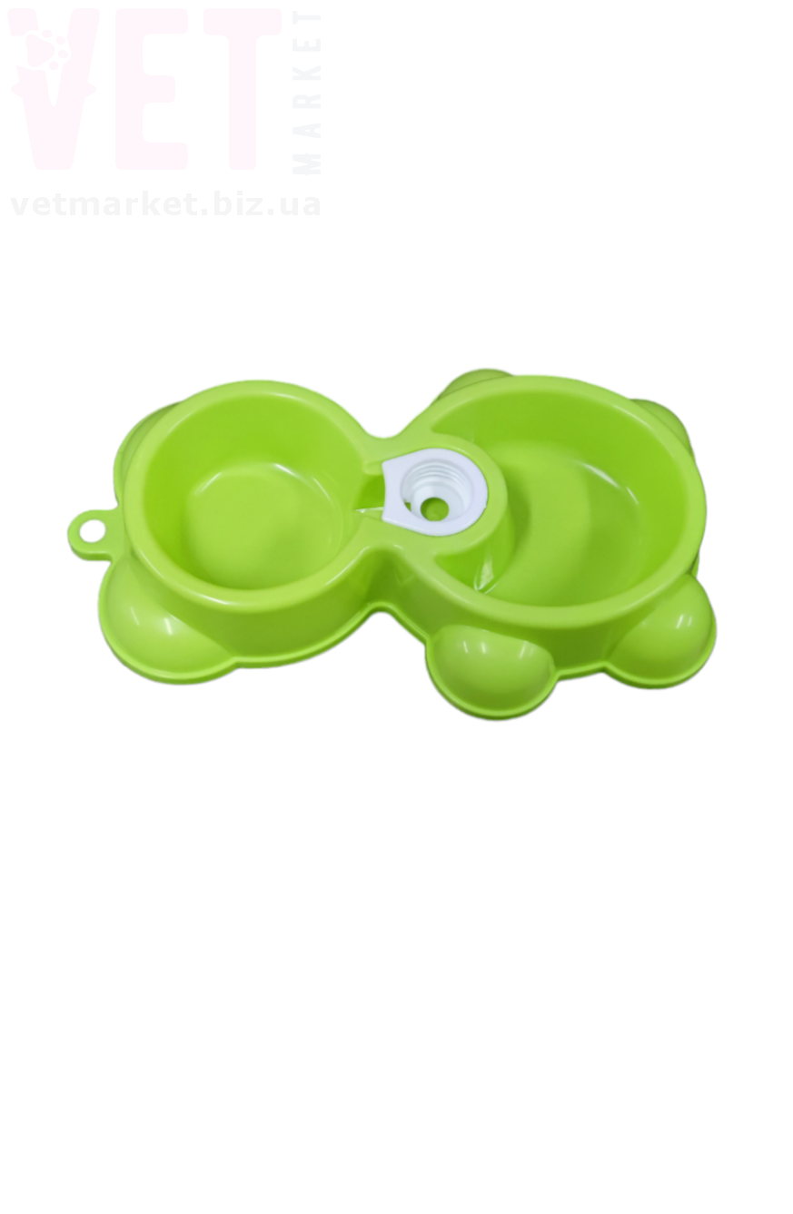 Миска двойная круглой формы с устойчивым дном. Изготовлена из экологически чистого пластика, используется для еды и питья Вашего питомца.