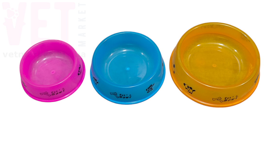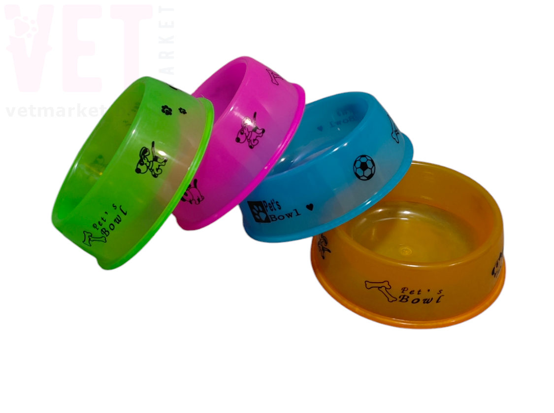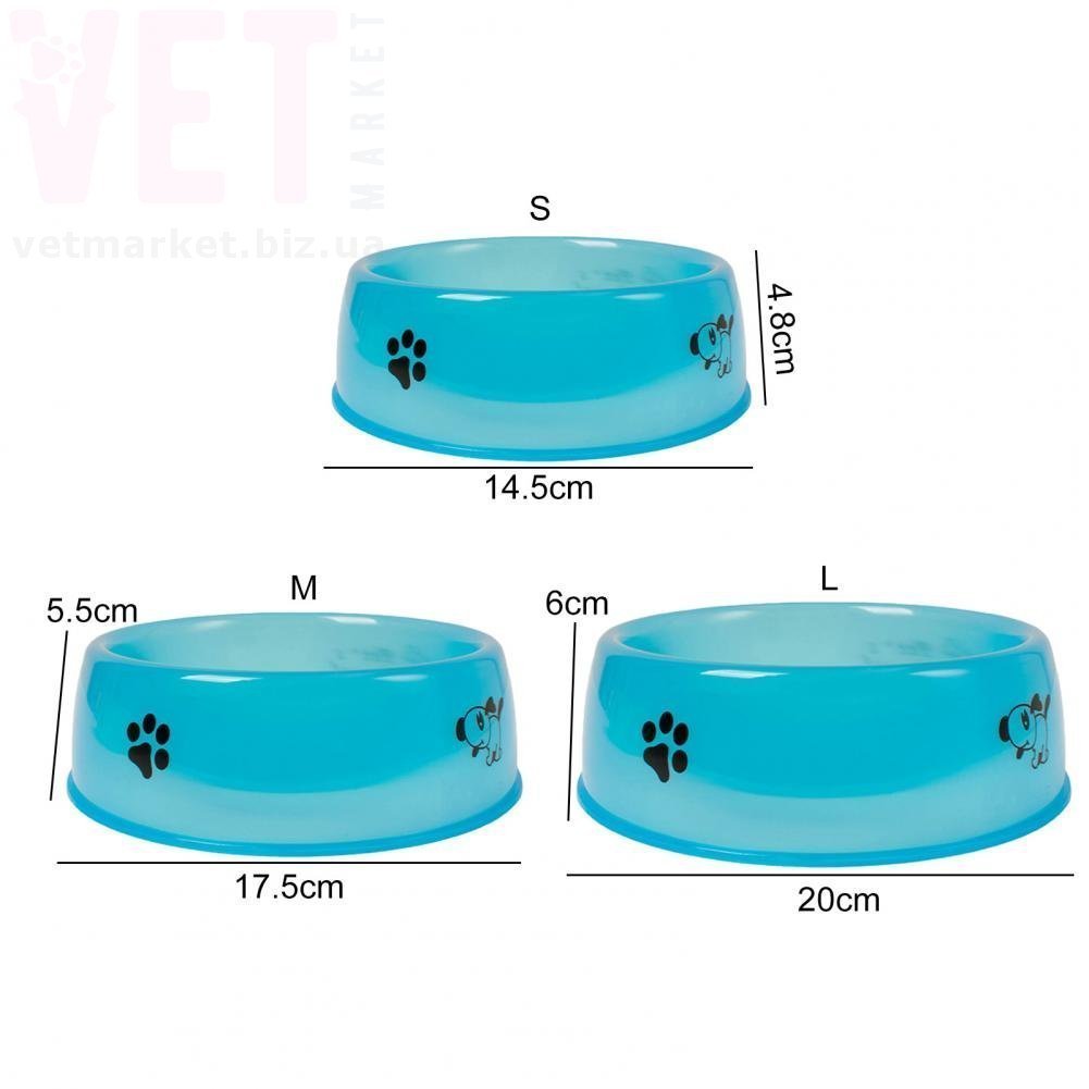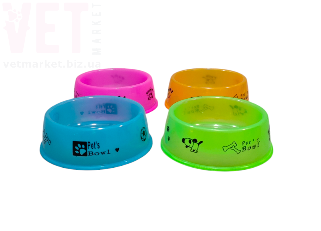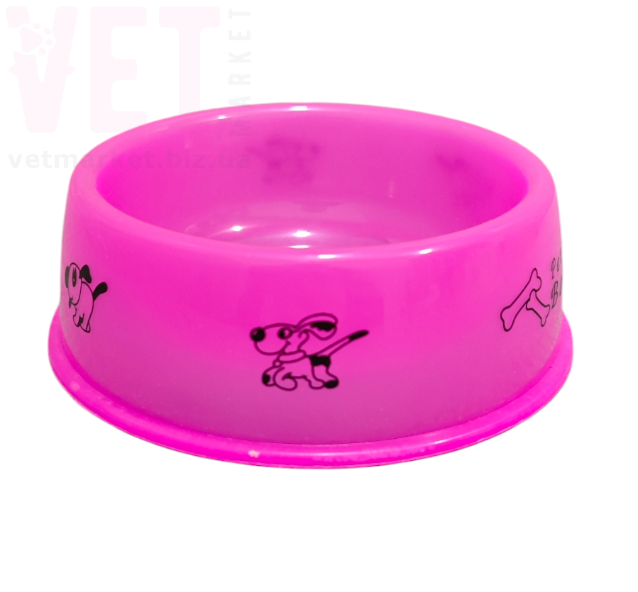 Миска для собак круглой формы с надписью. Изготовлена из экологически чистого пластика, используется для еды и питья Вашего питомца.