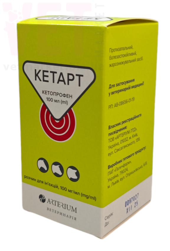 КЕТАРТ – нестероидный противовоспалительный препарат, имеющий анальгезирующее, противовоспалительное и жаропонижающее действие. Не все аспекты механизма действия известны. Эффекты препарата достигаются частично путем угнетения синтеза простагландина и лейкотриена путем торможения активности циклооксигеназы и липоксигеназы соответственно. Также кетопрофен ингибирует синтез брадикинина и агрегацию тромбоцитов.