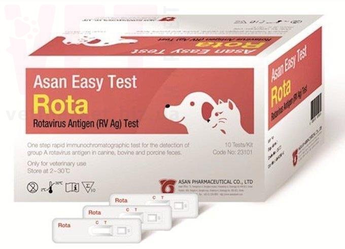 Asan EasyTest Rota Ag є високочутливим імунохроматографічним експрес-тестом для якісного визначення ротавірусу у досліджуємому зразку (калу) собак або котів.