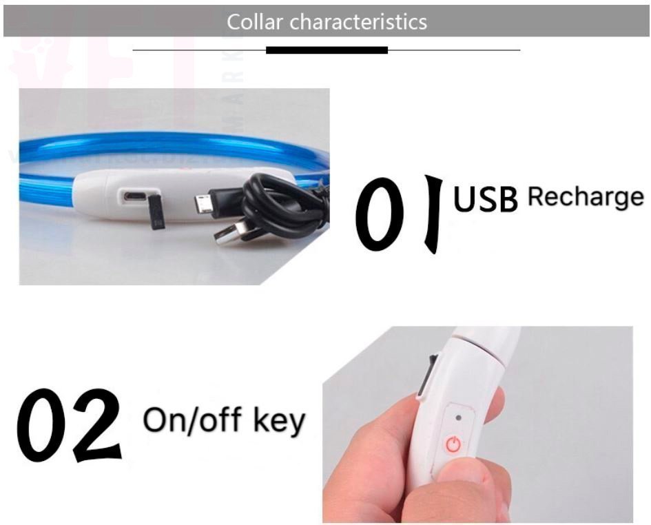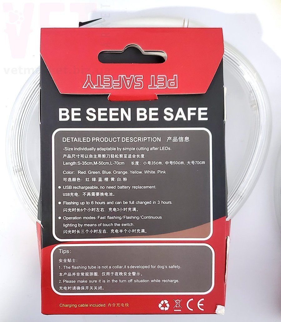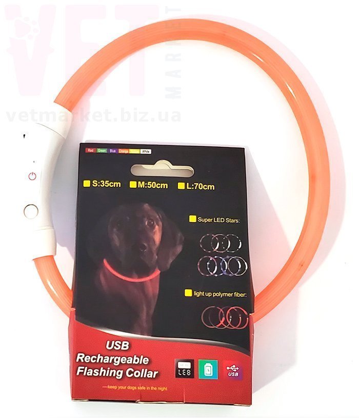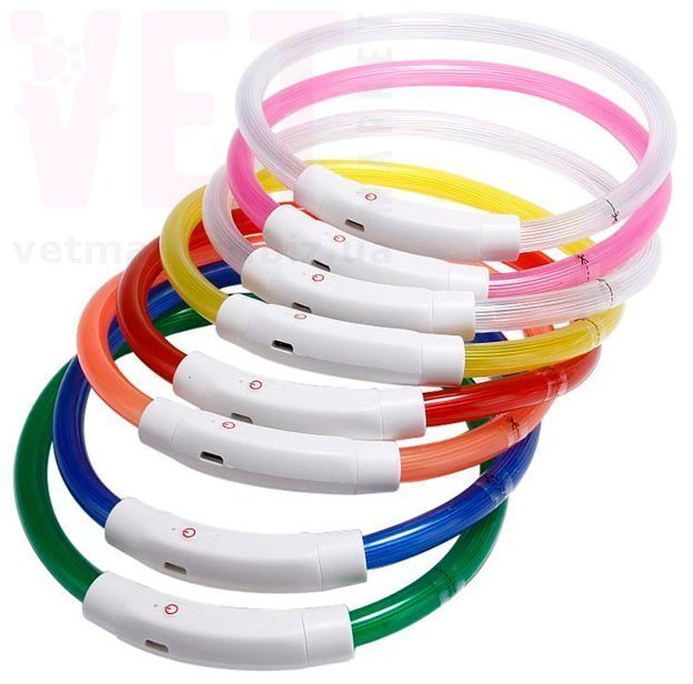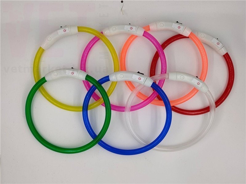 Светодиодный USB ошейник для собак со шнуром для подзарядки в комплекте делает вашего питомца хорошо видимым в темное время суток. Ошейник защелкивается на шее собаки с помощью кнопки, а его длину можно легко отрегулировать просто отрезав свободный край ошейника. Ошейник выполнен из мягкого силикона, не натирает шею, очень легкий. Влагоустойчивый, можно гулять под дождем. Три простых настройки кнопок, медленное мигание, быстрое мигание и непрерывное свечение.