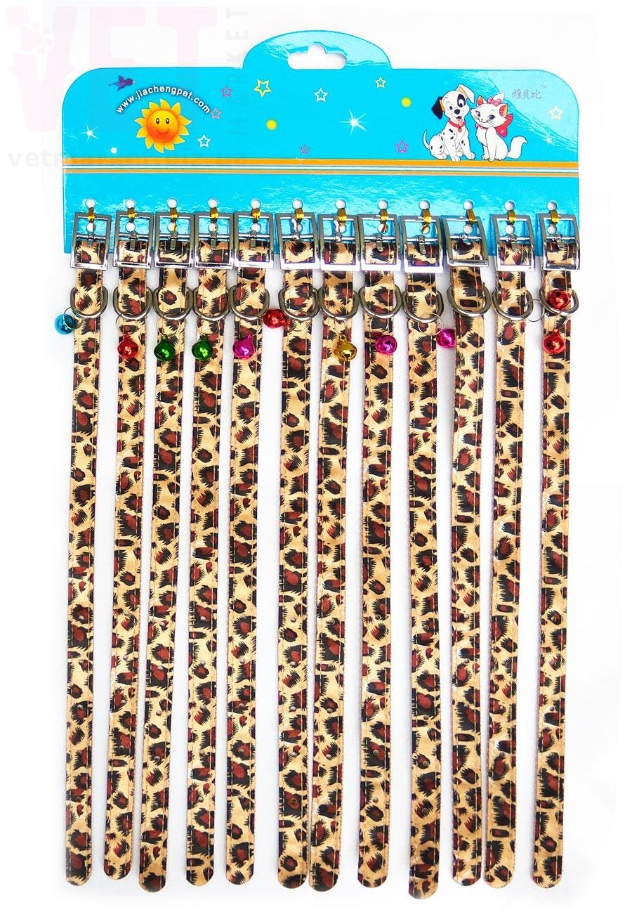 Ошейник с колокольчиком леопардового окраса на металлической застежке для собак мелких пород, а также кошек. Удобно и комфортно сидит на шее у домашнего питомца.