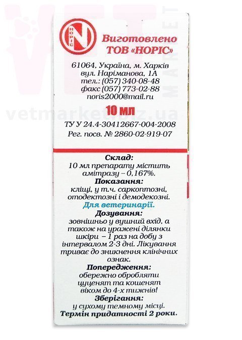 Состав 10 мл препарата содержит: амитразу - 0,167% Дозировка