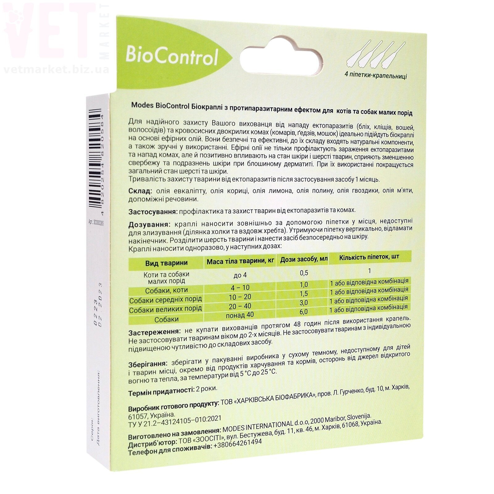 БіоКонтроль біокаплі для котів та собак дрібних порід, 4 піп.*0,5 мл, Modes