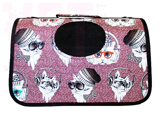 Складна стильна дорожня сумка-перенесення із малюнками. Призначена для перенесення та транспортування кішок та собак дрібних порід вагою від 3 кг до 5 кг (розмір S), від 5 до 7 кг (розмір M), від 7 до 10 кг (розмір L). Виготовлена із міцних та якісних матеріалів - нейлону, поліестера та вінілу, гіпоалергенних та нетоксичних для тварин. Сумка водонепроникна, добре вентилюється завдяки широкому відверні з міцною сіточкою вгорі посередині сумки, а також вхідному відверстию з сіточкою, що застібається та відстібається. Оснащена зручною та міцною ручкою. У комплект також входить ремінець для перенесення на плечі. У сумці вихованець почуватиметься комфортно, затишно та спокійно при перенесенні чи транспортуванні. Виріб легко збирається та розбирається завдяки міцним змійкам-застібкам. Легко чиститись.