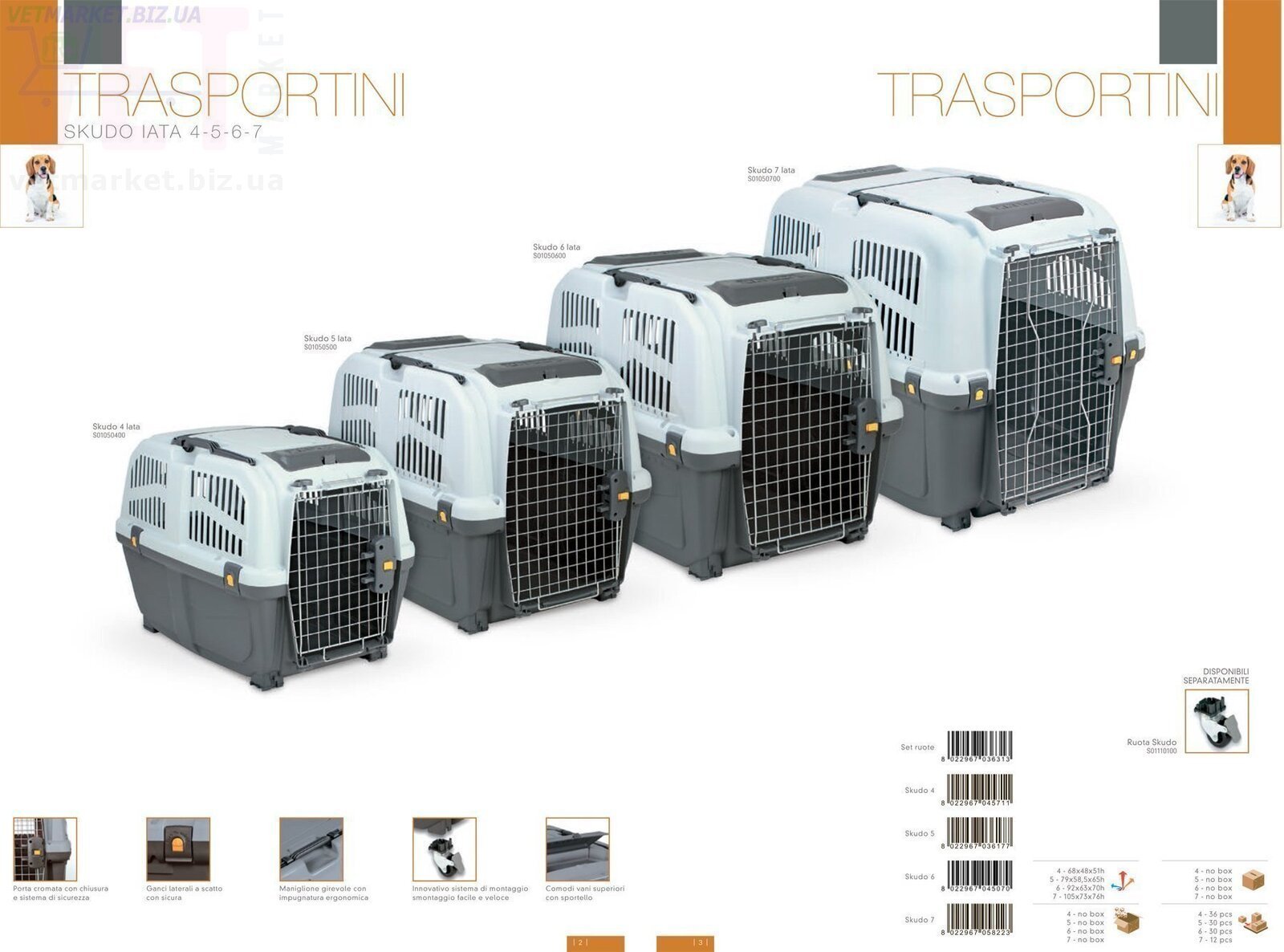 Додатково на переноску можна встановити комплект коліс для перенесення SKUDO (Скудо) IATA .