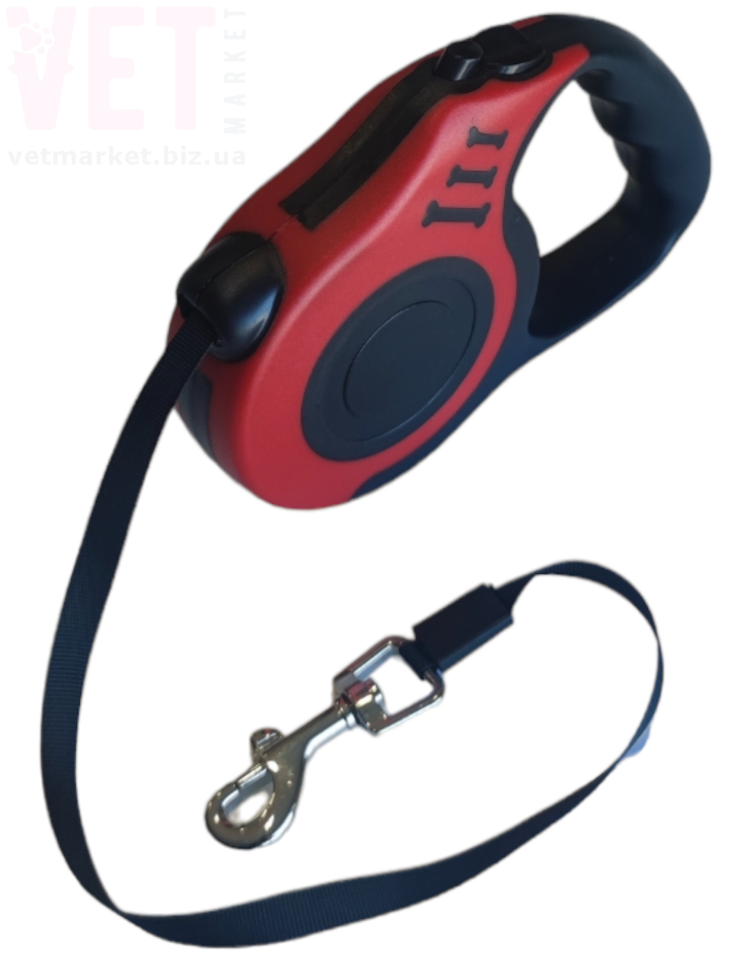 - Выдвижной ленточный поводок с удобной кнопкой позволяет легко регулировать длину.