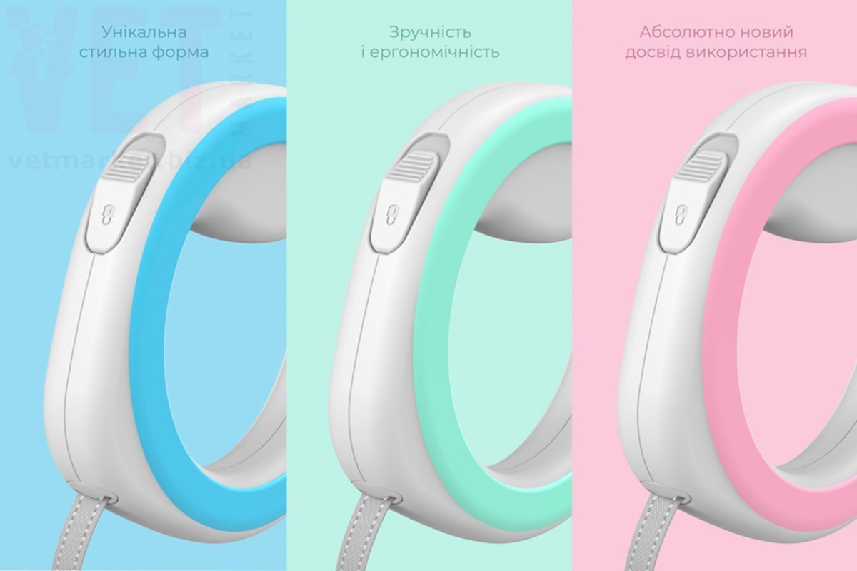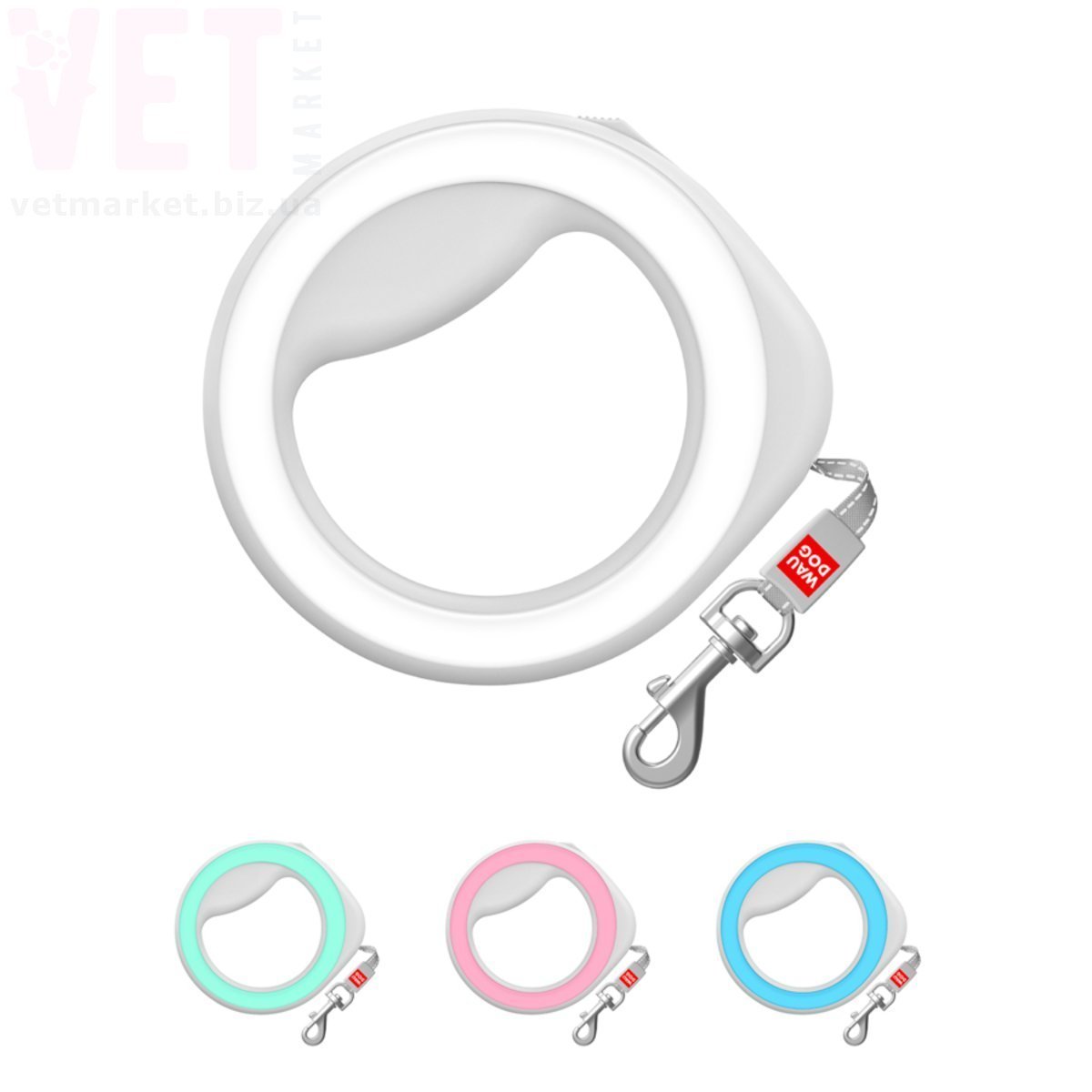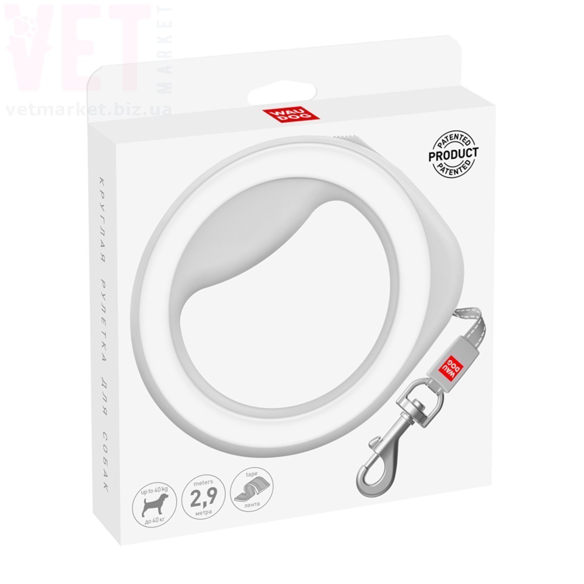 Повідець-рулетка WAUDOG R-leash, кругла, XS-M, до 40 кг, 2,9 м, світловідбиваюча стрічка білий
