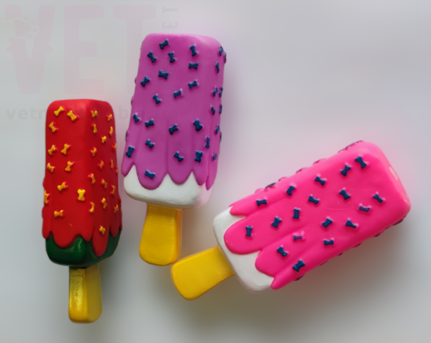 Іграшка для собак гумова Морозиво на паличці з пищалкою - ідеальна розвага для вашого собаки! Іграшка має яскравий колір та пищалкувсередині, яка звучить при натисканні.