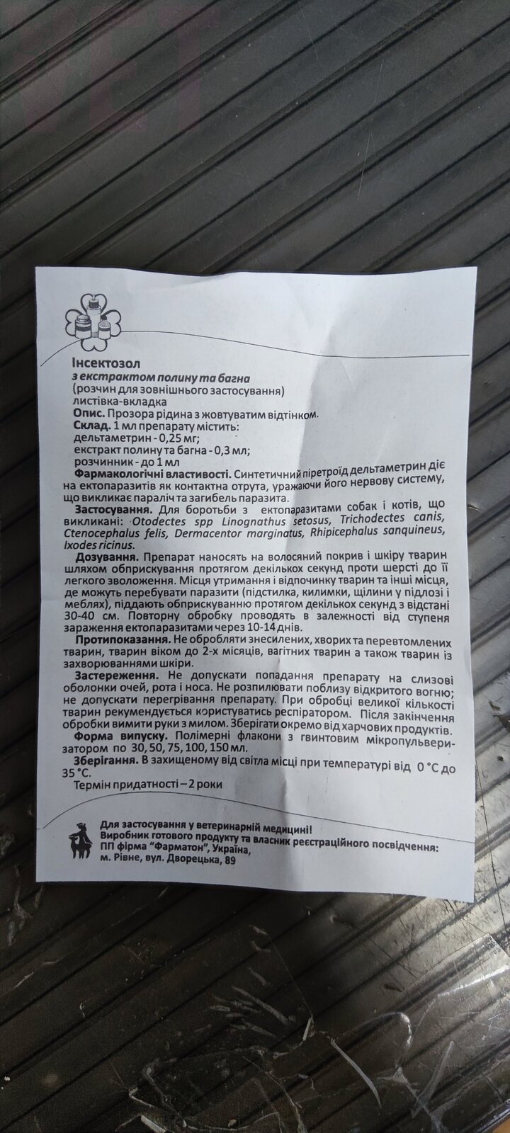 Не обробляти хворих і ослаблених тварин, тварин із захворюваннями шкіри.