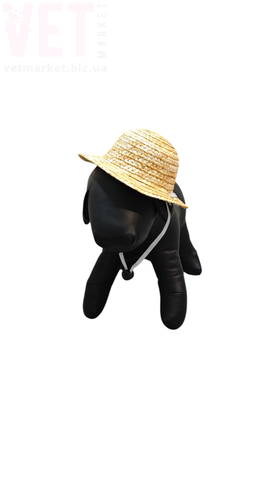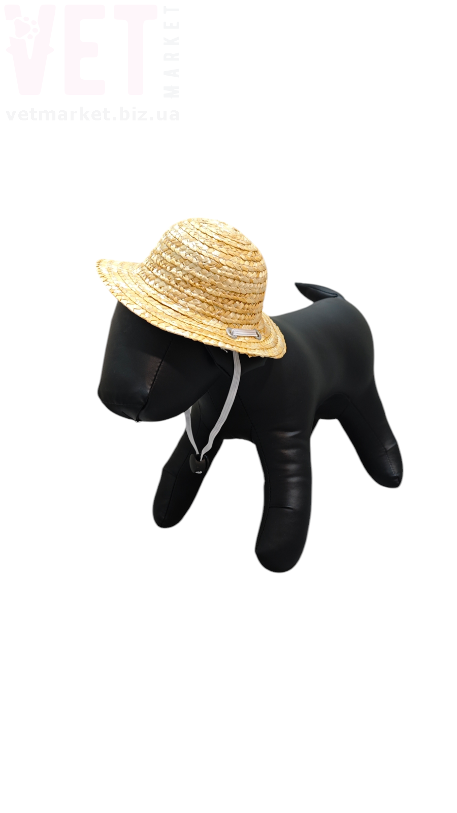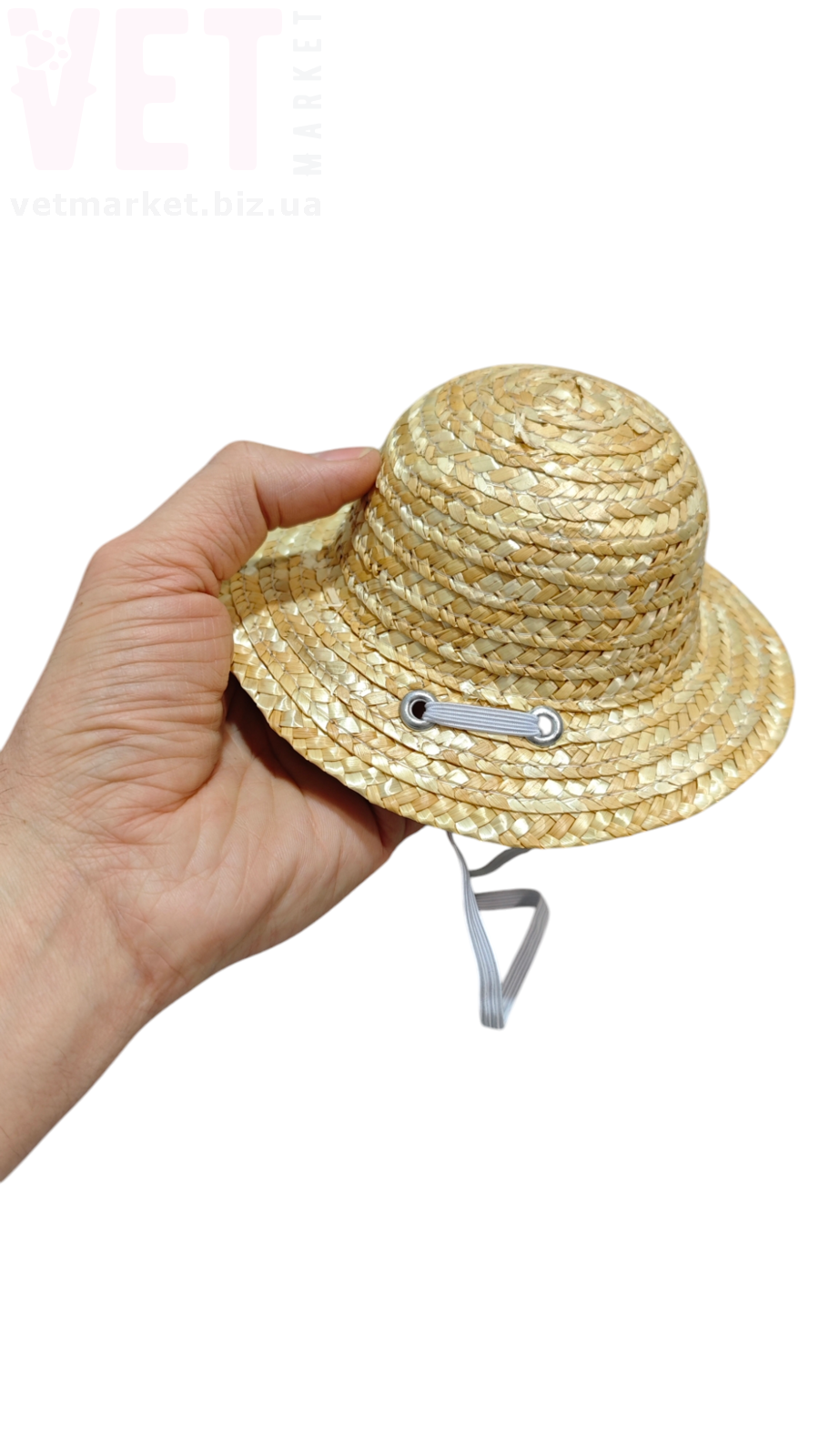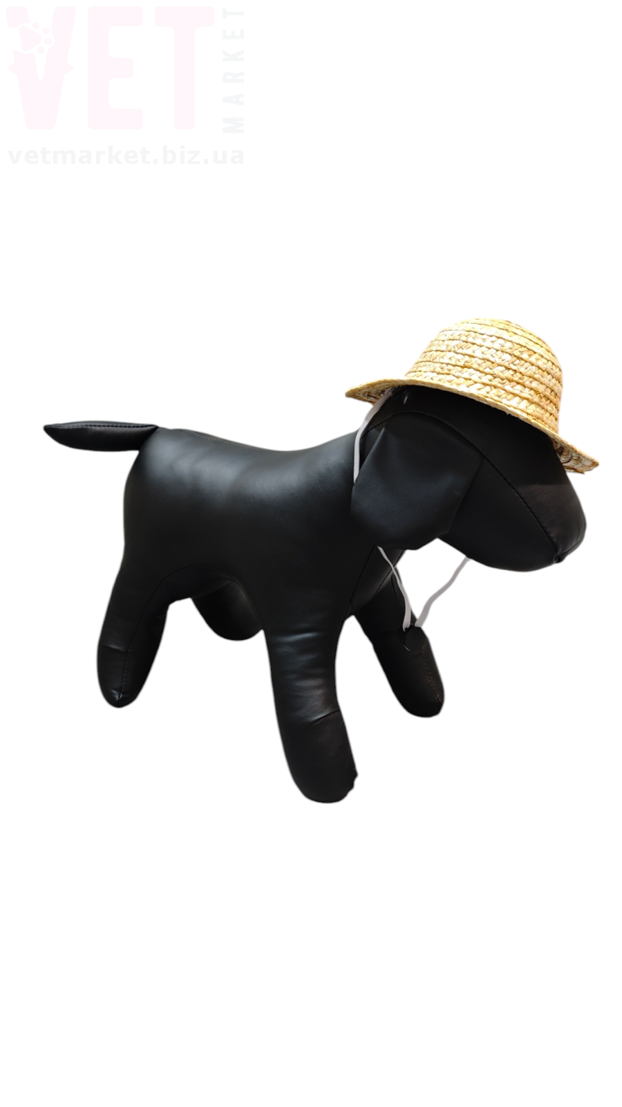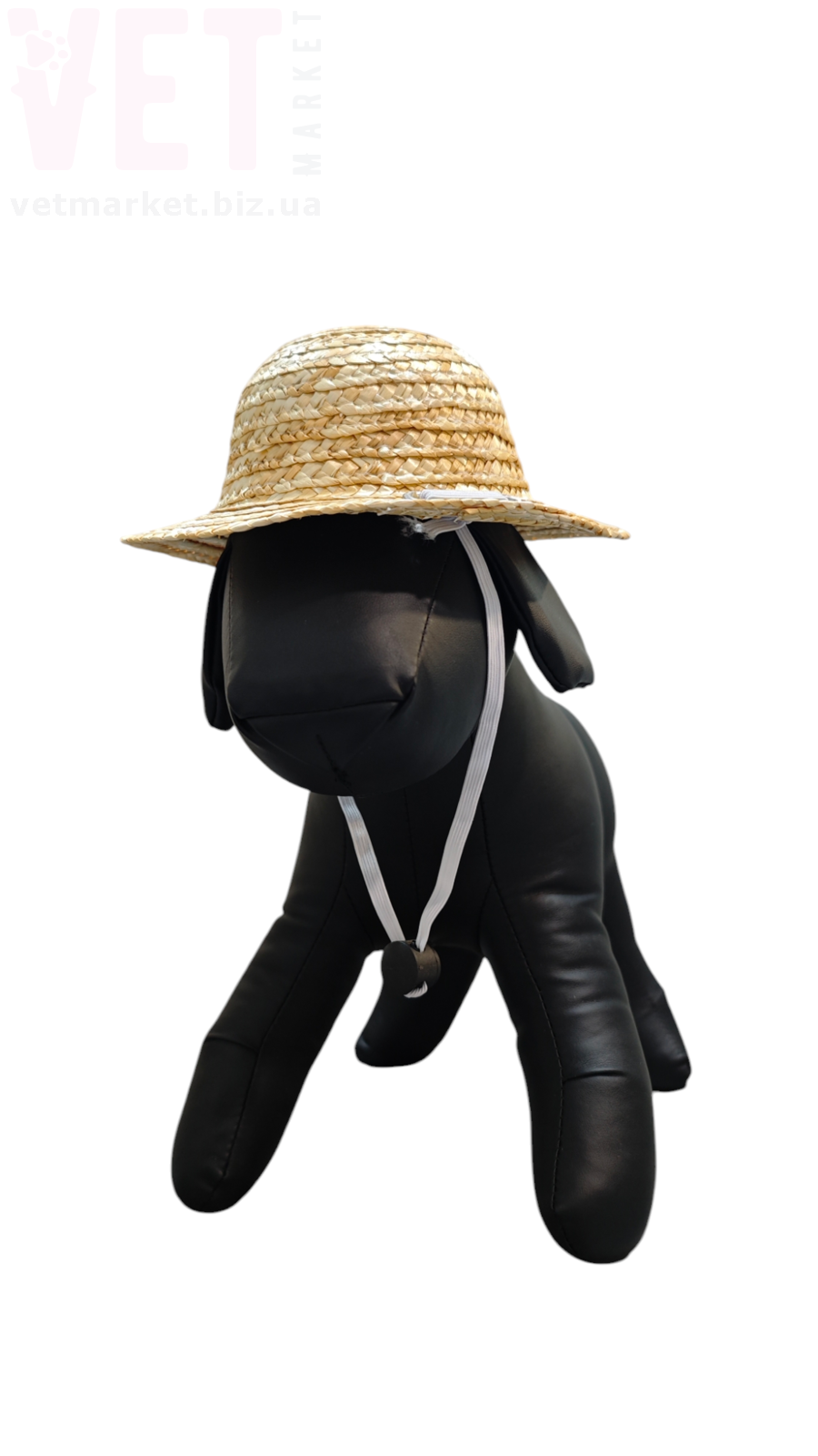 Капелюшок виготовлений з натуральної соломи, що забезпечує легкість та комфортне носіння навіть у спеку. Гумка з затяжкою надійно фіксує аксесуар, не викликаючи дискомфорту у улюбленця.