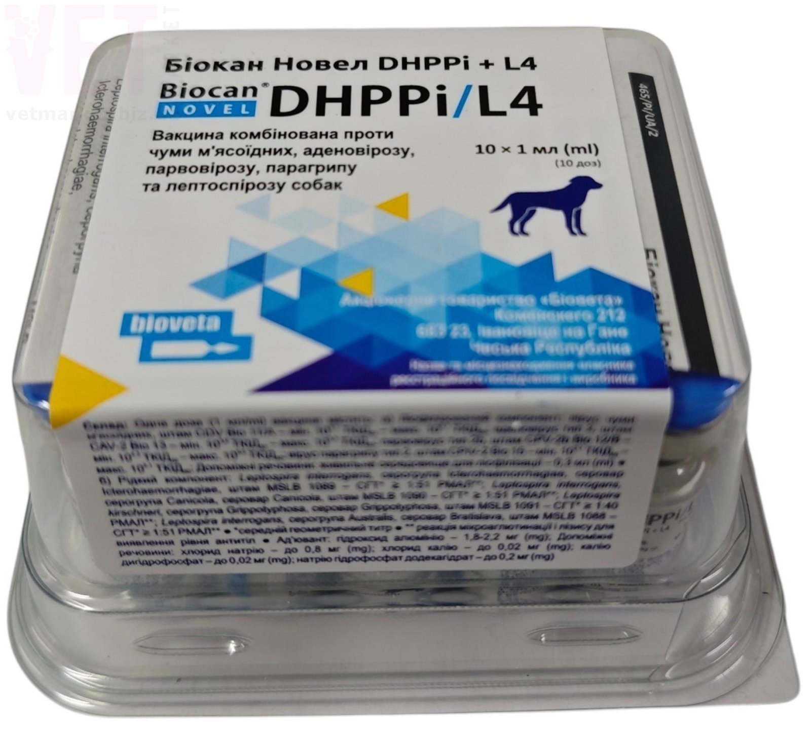 Біокан Новел DHPPi + L4 — це комплексна вакцина для собак, призначена для формування активного імунітету проти небезпечних вірусних і бактеріальних захворювань. Забезпечує надійний захист від основних інфекцій, що найчастіше зустрічаються у собак.