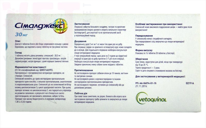 Сімалджекс 30 мг, 16 табл., Vetoquinol