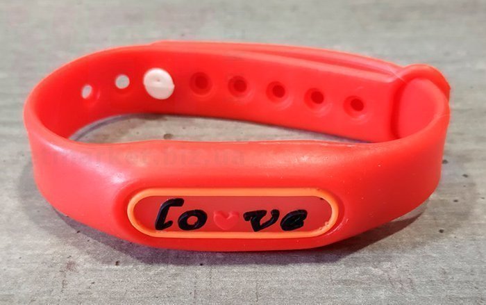 Достаньте браслет со сменной вставкой из упаковки, убедитесь, что вставка с репеллентом установлена в место крепления силиконового браслета.
