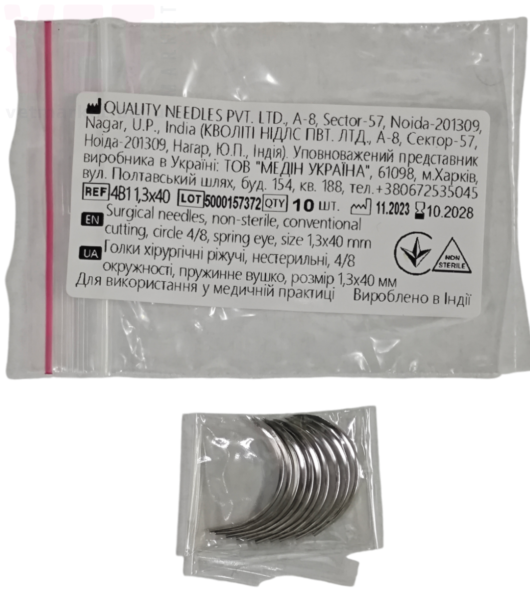 Голка хірургічна ріжуча, нестерильна 4В1 1,3*40 мм