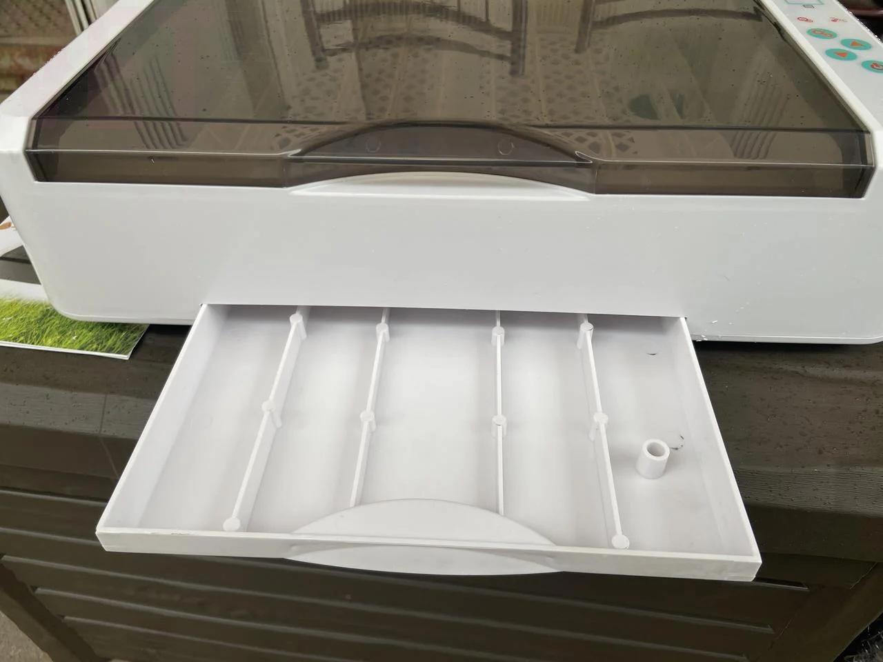 Для воды предусмотрен выдвижной поддон на дне корпуса. Увеличить уровень влажности можно не открывая инкубатор, а достав поддон и долив в него нужное количество воды.