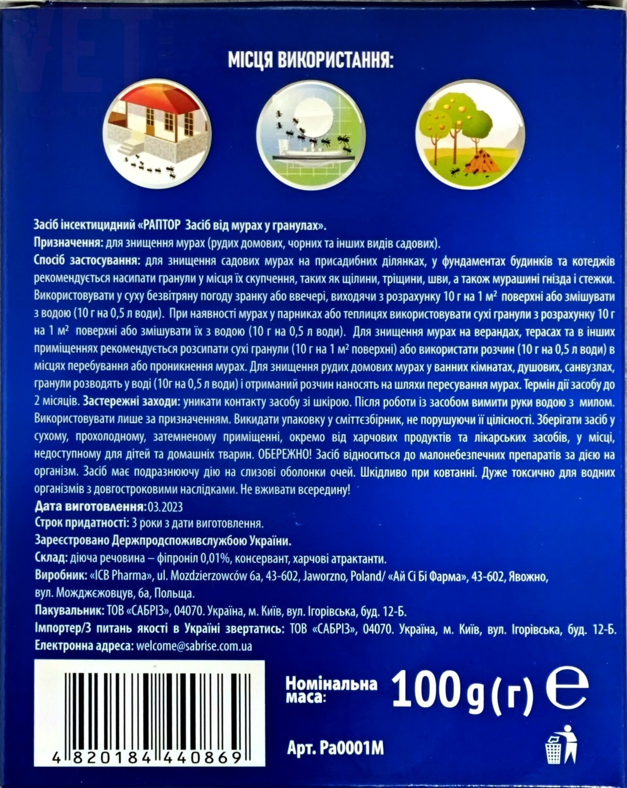 РАПТОР засіб від мурах у гранулах (у саше), 100 г