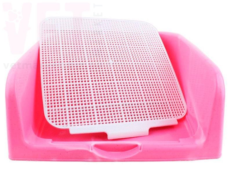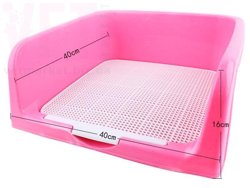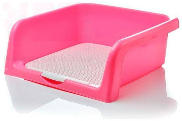 Туалет для животных розовый с сеткой. Представляет собой открытый, пластиковый лоток с бортиками для удобного использования. Поддержит чистоту и гигиену в вашем доме.
