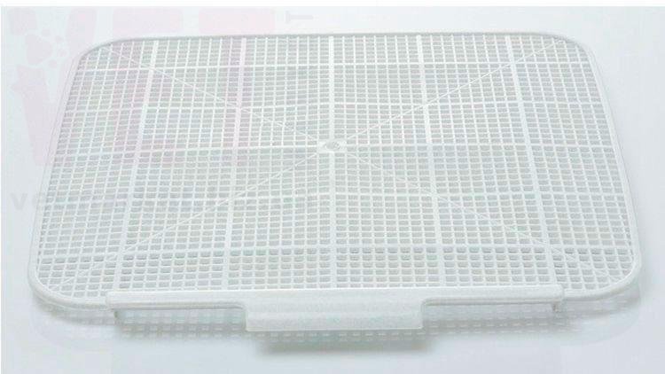 - Под решетку кладется впитывающая пеленка, чтобы лапки животного оставались сухими.